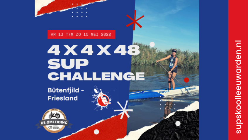 Doe jij ook mee met de SUP Challenge 4x4x48 in Friesland! Je peddelt 4 Miles (6,5 km), elke 4 uur, voor een periode van 48 uur.