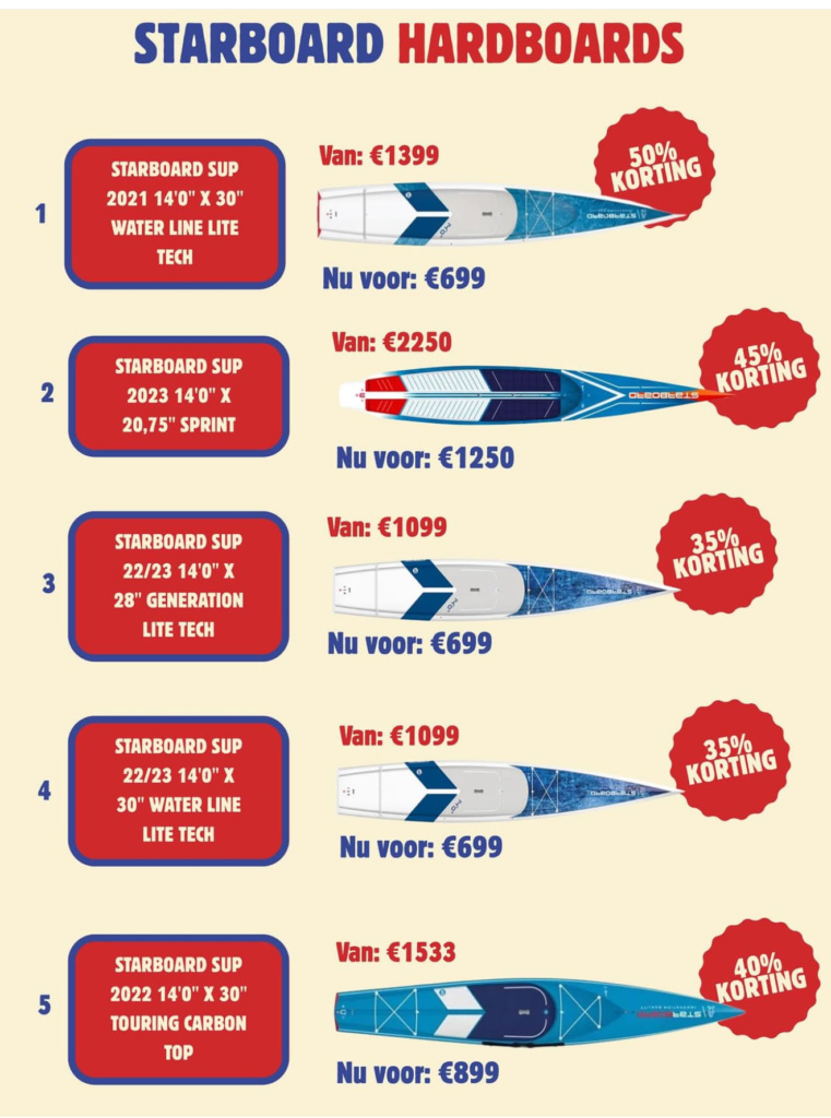 Enorme kortingen tot 50% op hardboards en inflatable boards!