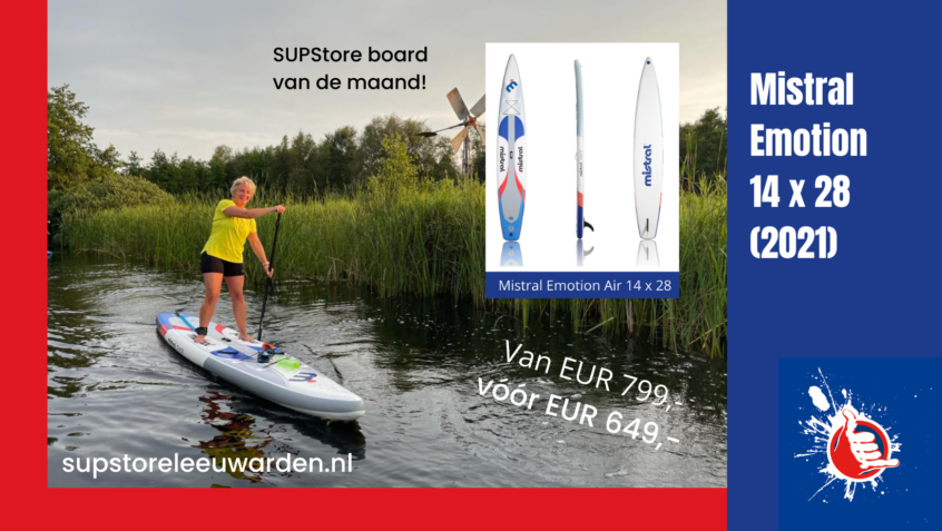 In mei 2022 bieden wij de inflatable Mistral Emotion 14×28 (package 2021) aan voor de super scherpe prijs van EUR 649,= (was EUR 799,=).