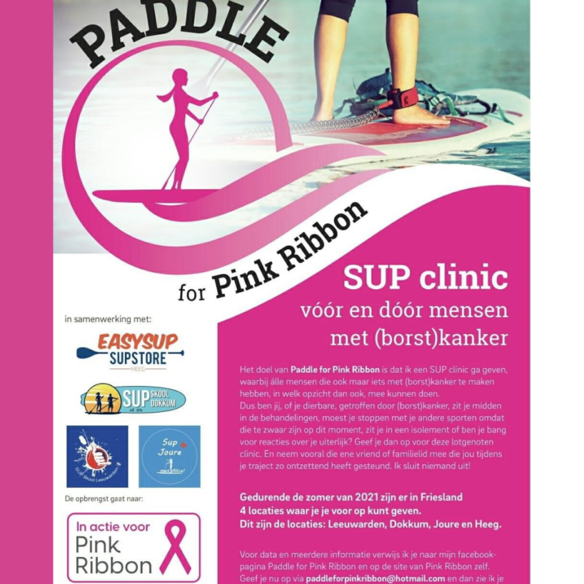 Deelname kosten voor deze SUP clinic in Leeuwarden bedragen EUR 20,- per persoon en opgeven kan via: paddleforpinkribbon@hotmail.com.